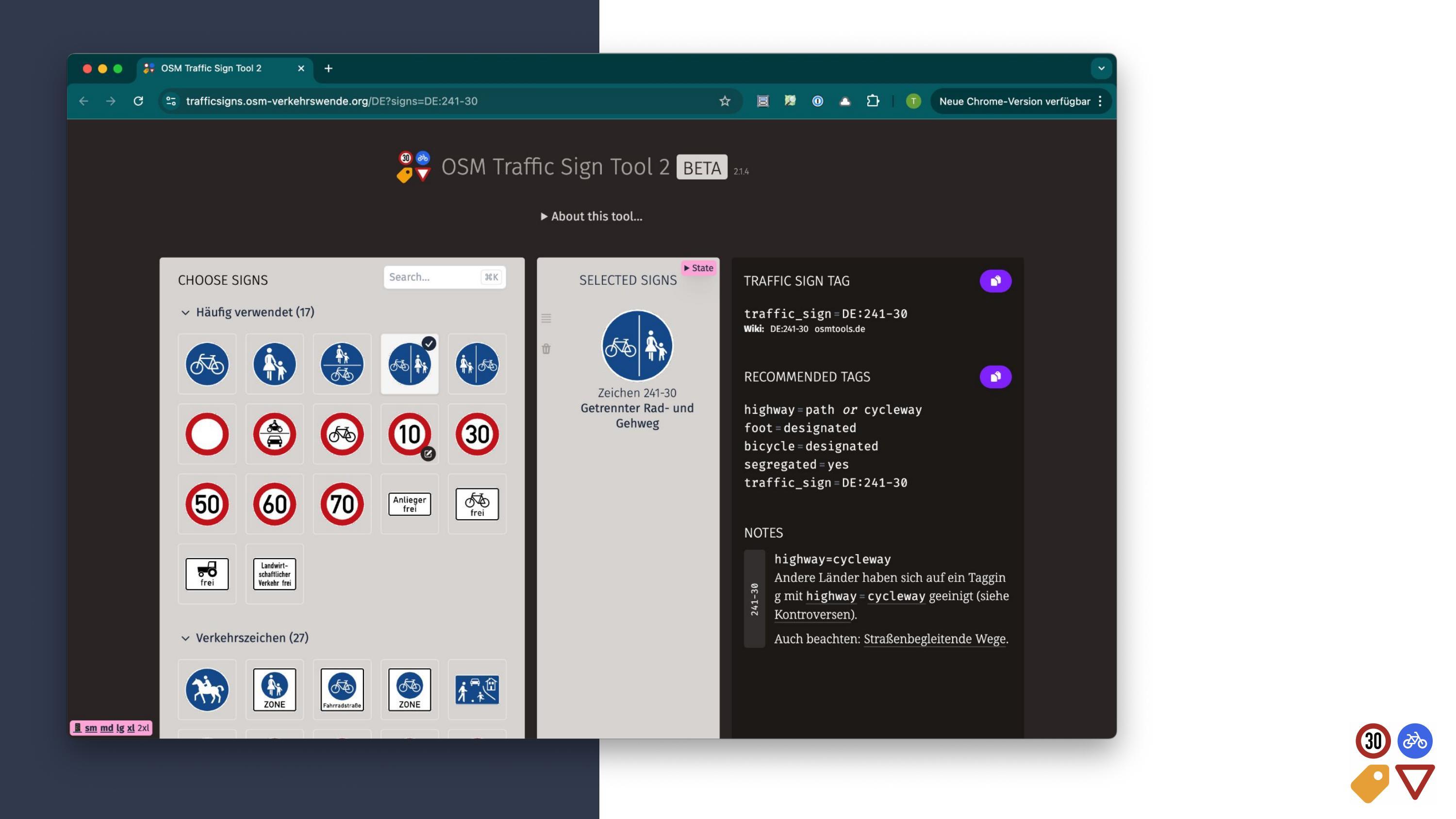Diesen Bedarf sehen auch OSM-Aktive aus anderen Ländern, die planen das Tool für ihre lokalen Verkehrszeichen zu erweitern.